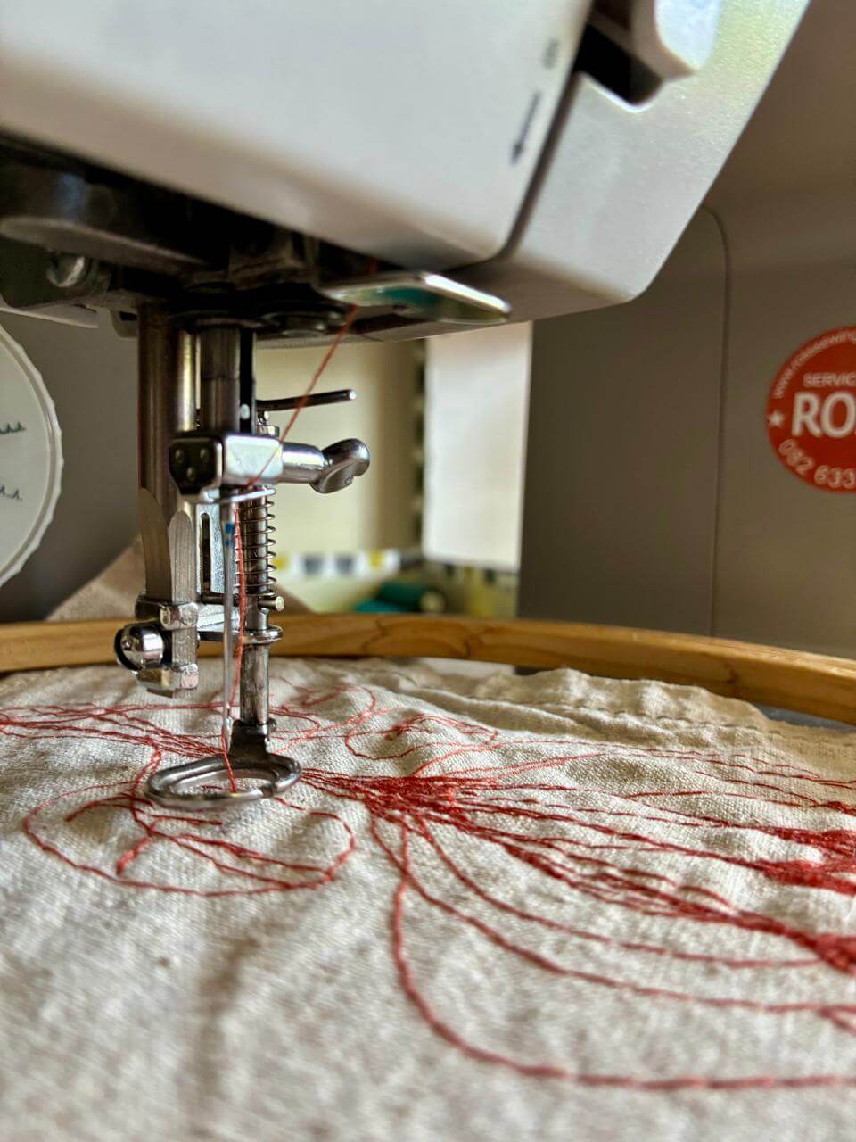 Do you know that all our cushions start life as a panel of plain hemp, which is hand painted, then stitched. We don't programme our designs into a fancy sewing machine, Leila literally draws with her sewing machine and thread. So each one is a functional piece of art.